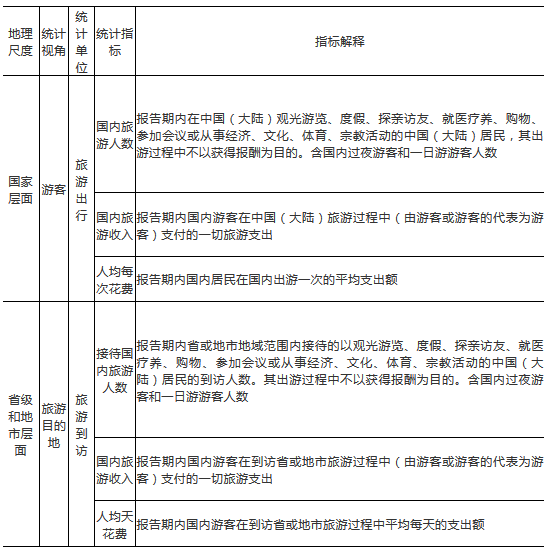 Table 1 Domestic tourism statistical indicators and explanations at different geographical scales in my country